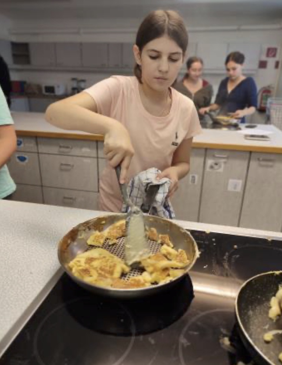 Zum gegenseitigen Kennenlernen haben die Schüler*innen aber zunächst gemeinsam eine österreichische Spezialität in der Schulküche zubereitet, nämlich den Kaiserschmarrn.