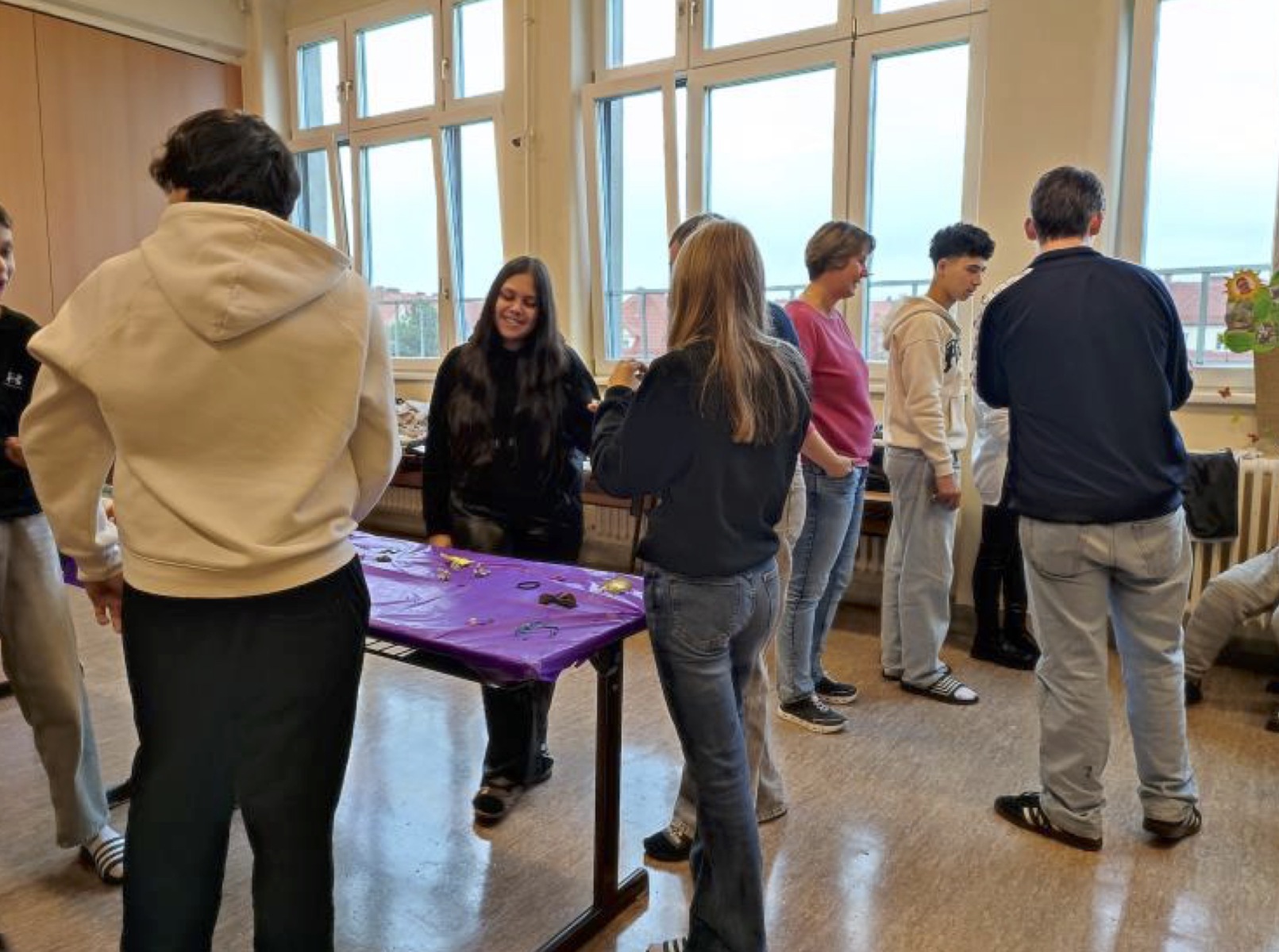 Auf der Grundlage der dort aufgefrischten Kenntnisse bereiteten die Schüler*innen am kommenden Tag die Tauschbörse vor, indem sie die Räumlichkeiten herrichteten, gespendete Kleidung sortierten und beschilderten, Plakate gestalteten und Interviewfragen entwickelten.